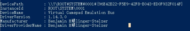 Install-ViGEmBusDeviceDriver如果没有出现错误的话,输入Get-ViGEmBusDevice就可以看到下面的信息