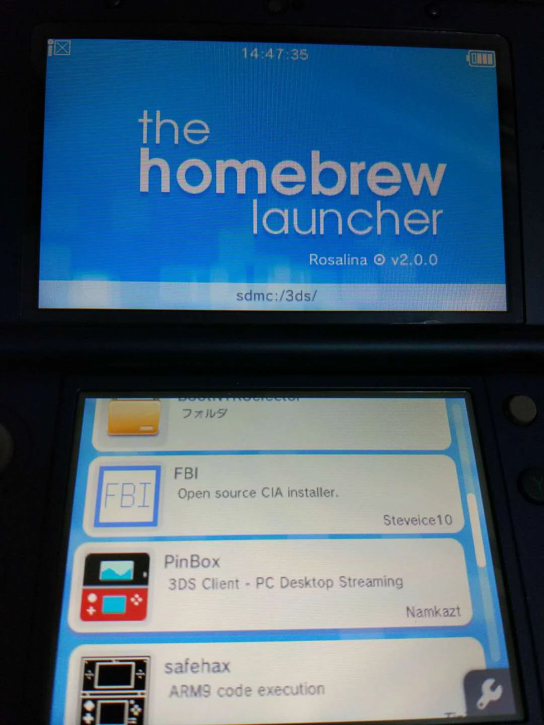 安装homebrew launcher 把PinBox_hb_r0.1.2f_final.rar 里面四个文件解压到SD卡的3DS目录下。 打开HomeBrew launcher,运行PinBox